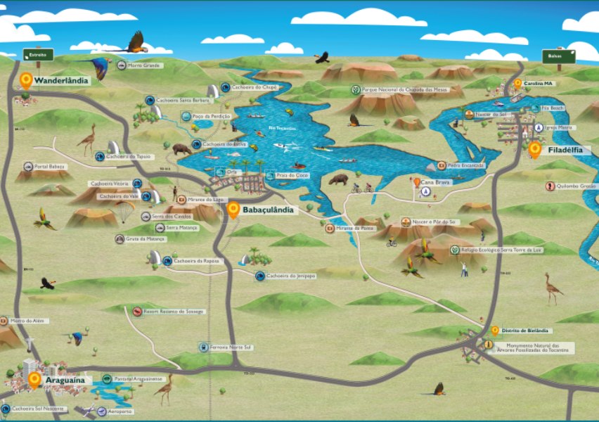 De Carolina (MA) e Chapada das Mesas: Filadélfia faz fronteira com Carolina, separadas pelo Rio Tocantins. Visitantes que exploram a Chapada das Mesas podem atravessar o rio por meio de balsas ou pontes, integrando facilmente os roteiros turísticos entre as regiões.